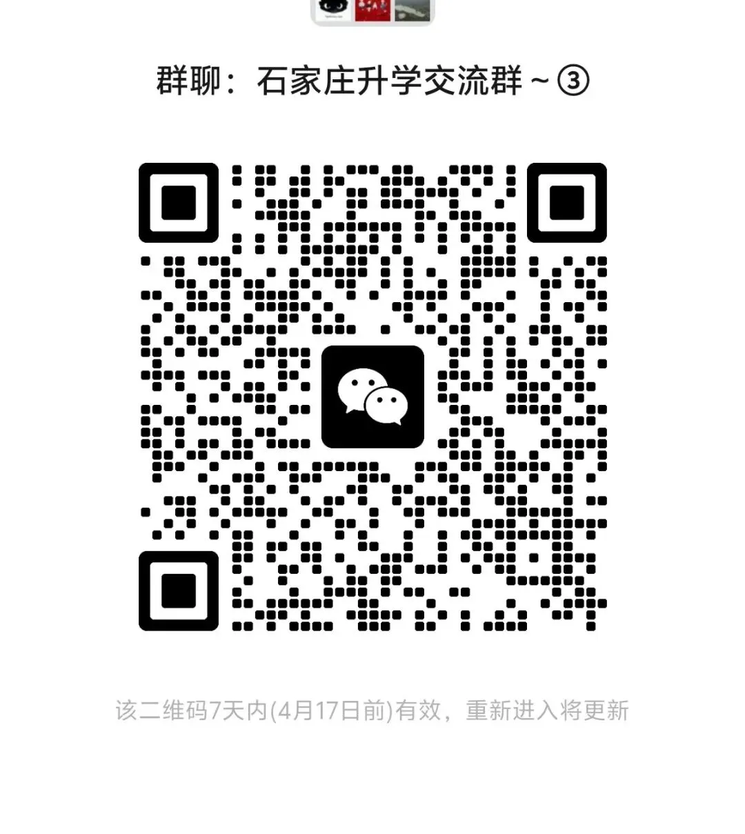 长按识别下方二维码可加入石家庄本地升学交流群