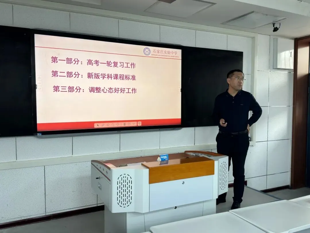 张志永副校长作一轮复习专项部署,明确“地毯式覆盖、基础性过关、体系化搭建”的核心定位,要求各备课组科学制定计划、精准把握学情、深研高考真题与新课标,推动教材教辅有机融合。他解读新课标价值引领、数字化应用、跨学科融合等核心变化,叮嘱教师调整心态、保障身心状态,以最佳面貌投入教学。