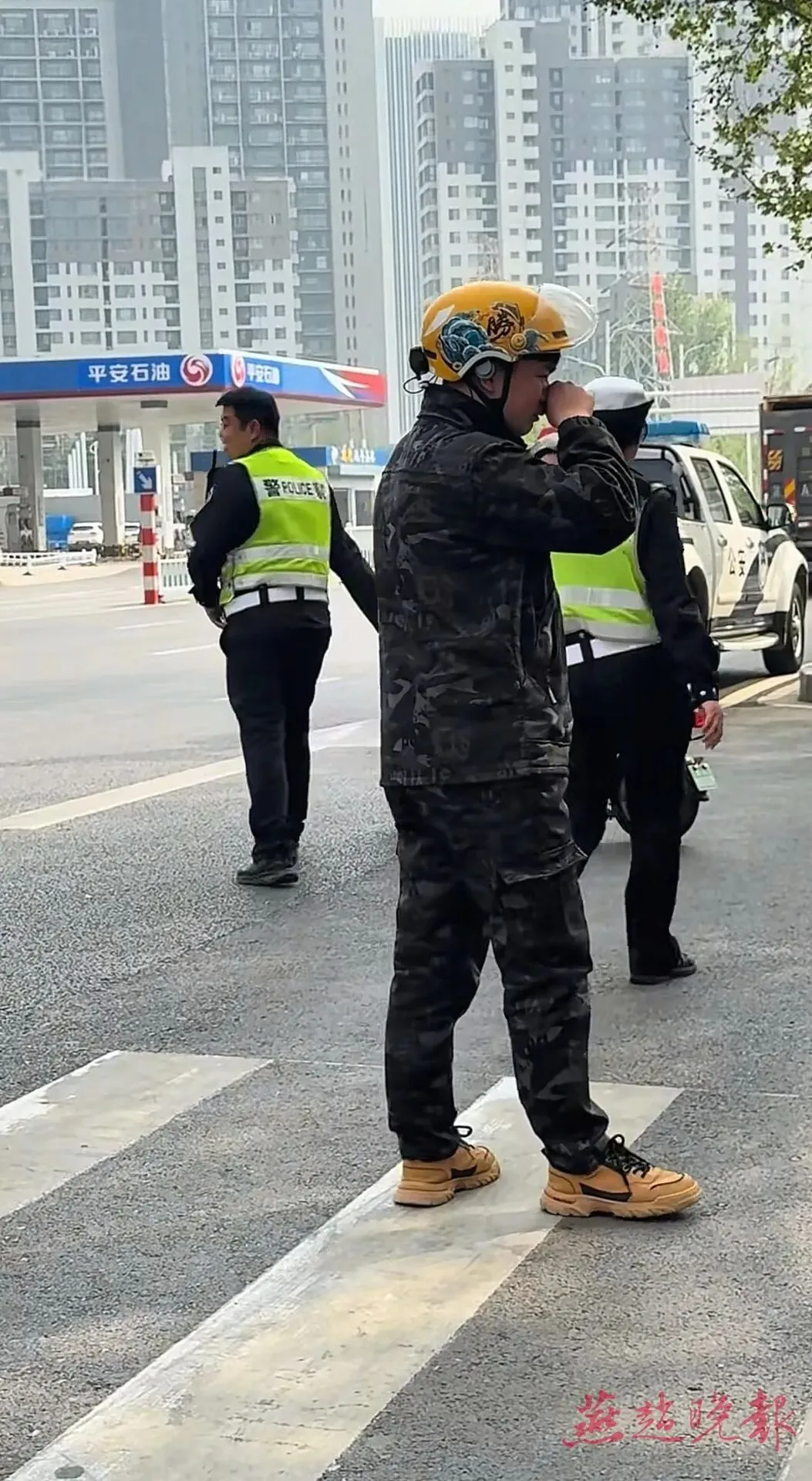 其实,晚报记者对焦亚楠并不陌生。早在2017年2月28日,本报A08版就曾刊发报道《乍暖还寒最美景 交警消防举线缆》。那天清晨的石家庄,乍暖还寒。一处地道桥前,一捆横跨马路的电缆从半空垂落,导致交通拥堵。清晨6时30分,长安交管大队九中队7名民辅警赶到现场。为尽快恢复通行,他们暂借一辆空驶公交车,两名警员站到车顶,将沉重的电缆搭在车顶。其中托举电缆的两人中就有焦亚楠。早春的清晨寒意犹在,可焦亚楠站在车顶,和另一名同事轮流将电缆托举在肩,一站就是两个小时。汗水顺着脸颊淌下,他顾不上擦,只为让拥堵的车流缓缓通过。