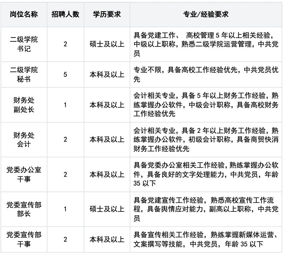 招聘岗位及要求