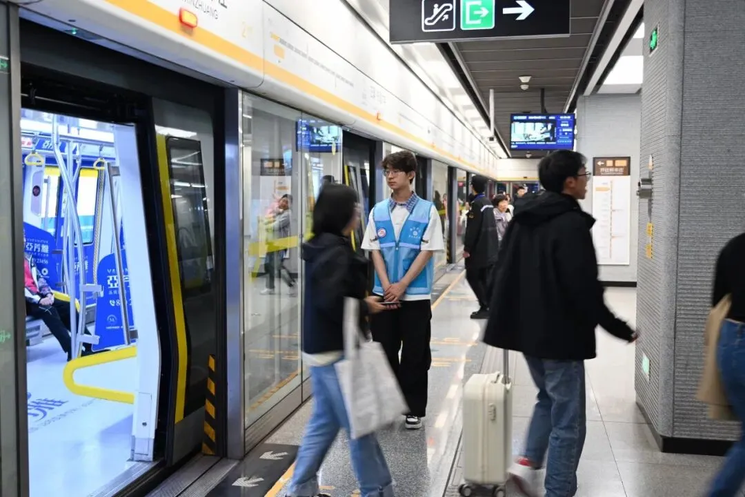 培训结束后,志愿者们迅速投入到服务岗位中。大家在站厅层自助售票机旁帮助不熟悉操作的乘客购票,在闸机口引导乘客有序刷卡进出,主动为携带大件行李的旅客提供帮助,在站台区域提醒候车乘客注意脚下安全、排队候车。