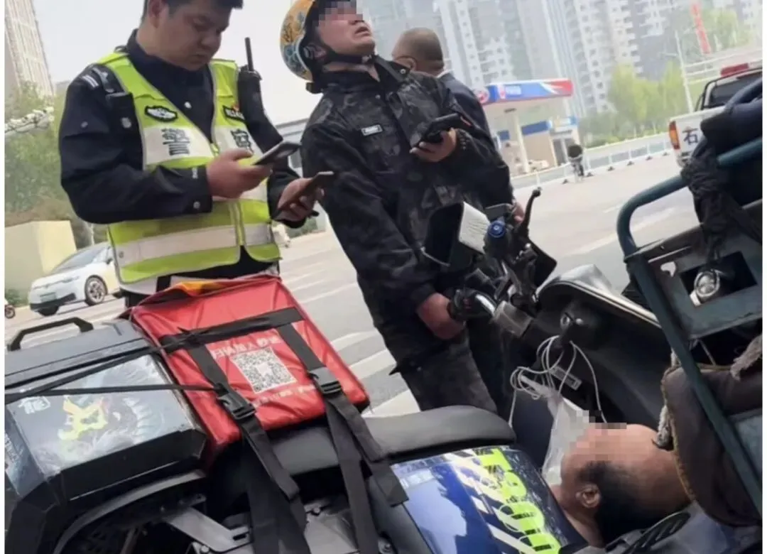一名外卖骑手在送餐途中,与一名过路老人发生轻微碰撞,现场并未造成老人明显外伤,老人行动自如、身体无大碍。