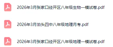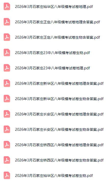 今天给同学们分享的是2026年3月石家庄长安区、裕华区、桥西区、新华区、正定等八年级地理生物模考试卷含答案