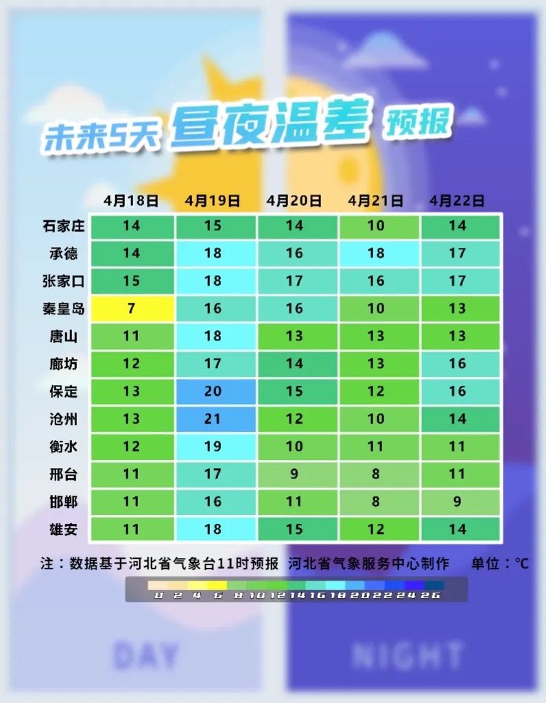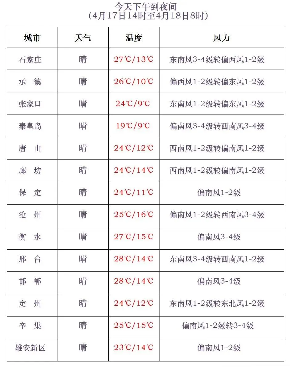河北省气象台2026年4月17日11时发布天气预报: