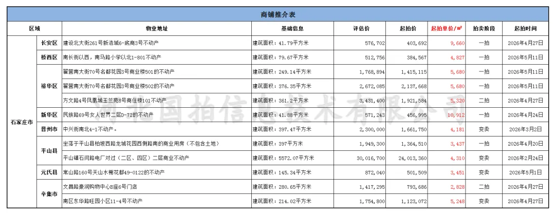 京东司法拍卖商业房源汇总
