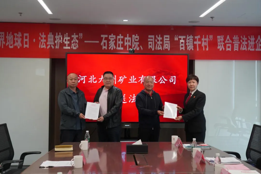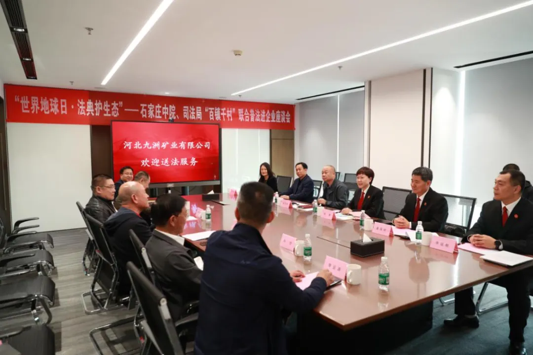 为迎接第57个世界地球日,深入推进生态环境法典普法宣传,助力企业绿色合规发展,4月13日下午,石家庄市司法局联合市中级人民法院,走进河北九洲矿业有限公司开展“世界地球日·法典护生态”生态环境法典普法进企业座谈会。