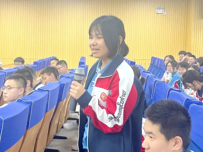 互动解惑,逐光而上。 在交流环节,同学们围绕英语提升、心态调节、高中规划等备考核心问题踊跃提问。程老师和学长耐心细致地逐一解答,言辞恳切、干货满满,现场气氛热烈而振奋,掌声不断。