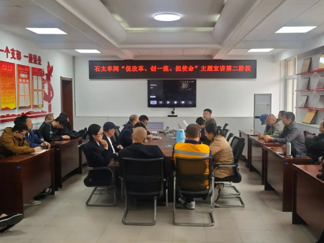 石太房建检修车间党支部开展“促改革、创一流、担使命”主题宣讲,常态化推进爱国主义、职工道德及法治教育。组织职工围绕“恪守岗位职责,对标作业标准,筑牢二季度安全根基”开展交流讨论,凝聚思想共识、强化责任担当,为安全生产和车间提质增效筑牢思想保障。(汤汝潇)