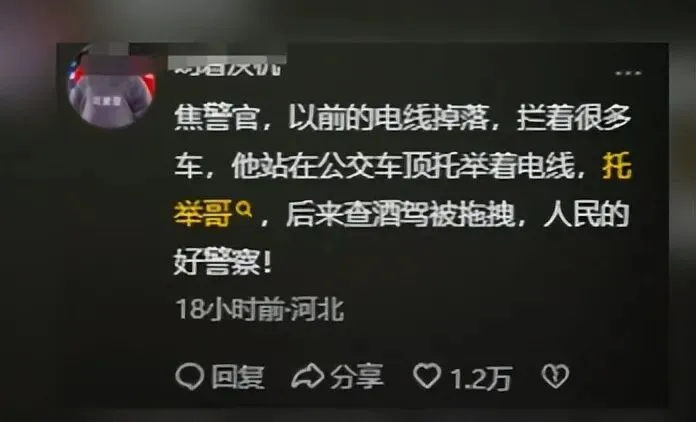 其实这已经不是焦警官第一次帮助别人了,此前城市里有电线掉落在地上,阻碍了交通通行。