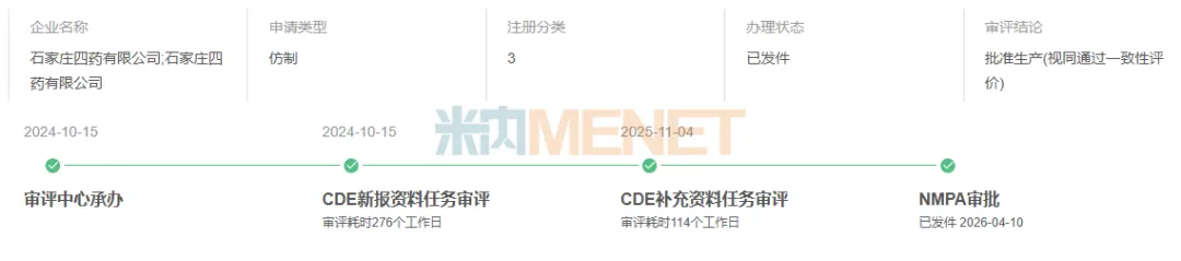 来源:米内网中国申报进度(MED)数据库