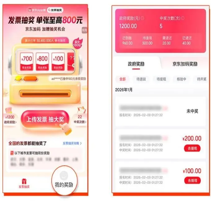 自2026年4月17日起,保留京东App发票上传和抽奖渠道,增加支付宝App发票上传和抽奖渠道。