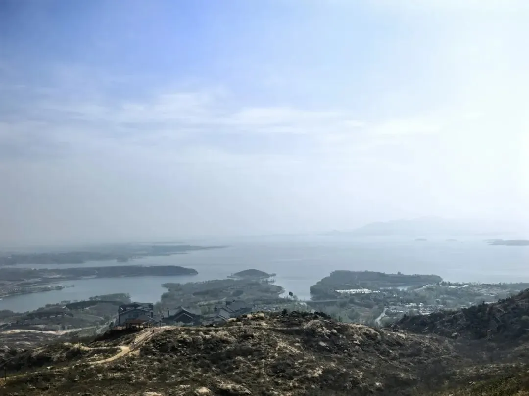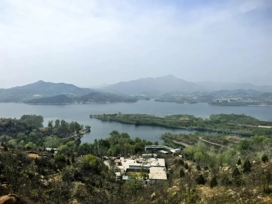 登顶后视野豁然开朗,岗南水库一望无际,碧蓝水面像极了海边。吹着风俯瞰水天一色,班味瞬间散光。