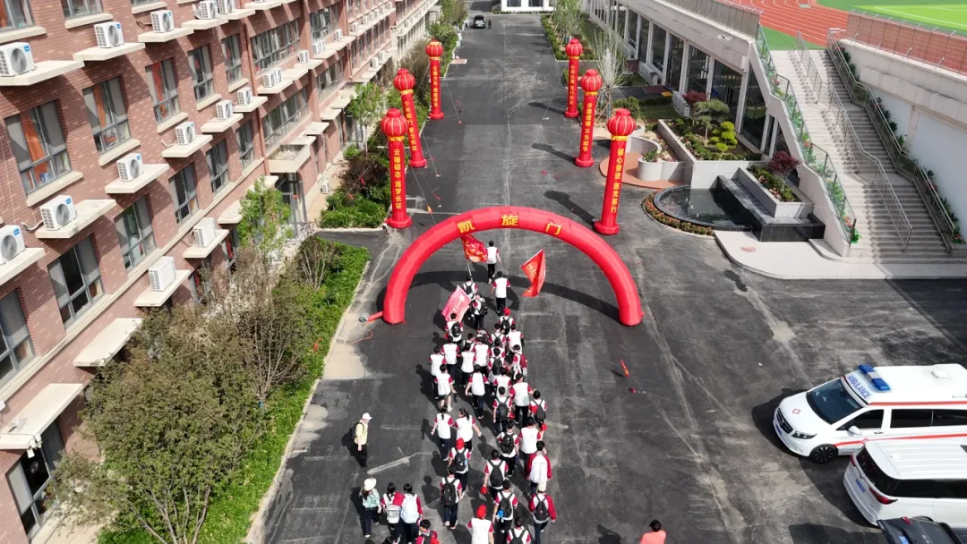 凯旋门下,红毯铺展。校领导列队迎接,为每一位归来的同学鼓掌欢呼。孩子们脸上写满骄傲与自豪。有同学分享道:“好几次想放弃,但看到同学在等、老师在鼓励,我就告诉自己,红军连雪山草地都走过了,我有什么理由停下来?”