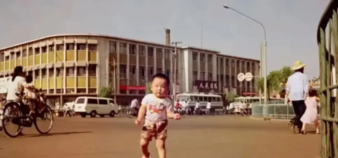 照片里的小胖娃撒腿跑在十字路口,后面是人民商场的老楼,小时候父母买布头或者新衣裳,肯定得来人民去溜一圈,那个拐弯的路口全是来往的自行车和老款面包车,小孩跑着玩,家长边上喊一嗓子“小心车”,那时没有现在这么多车,但大人总不放心,孩子却玩得起劲,心大的很,现在哪还有这阵仗。