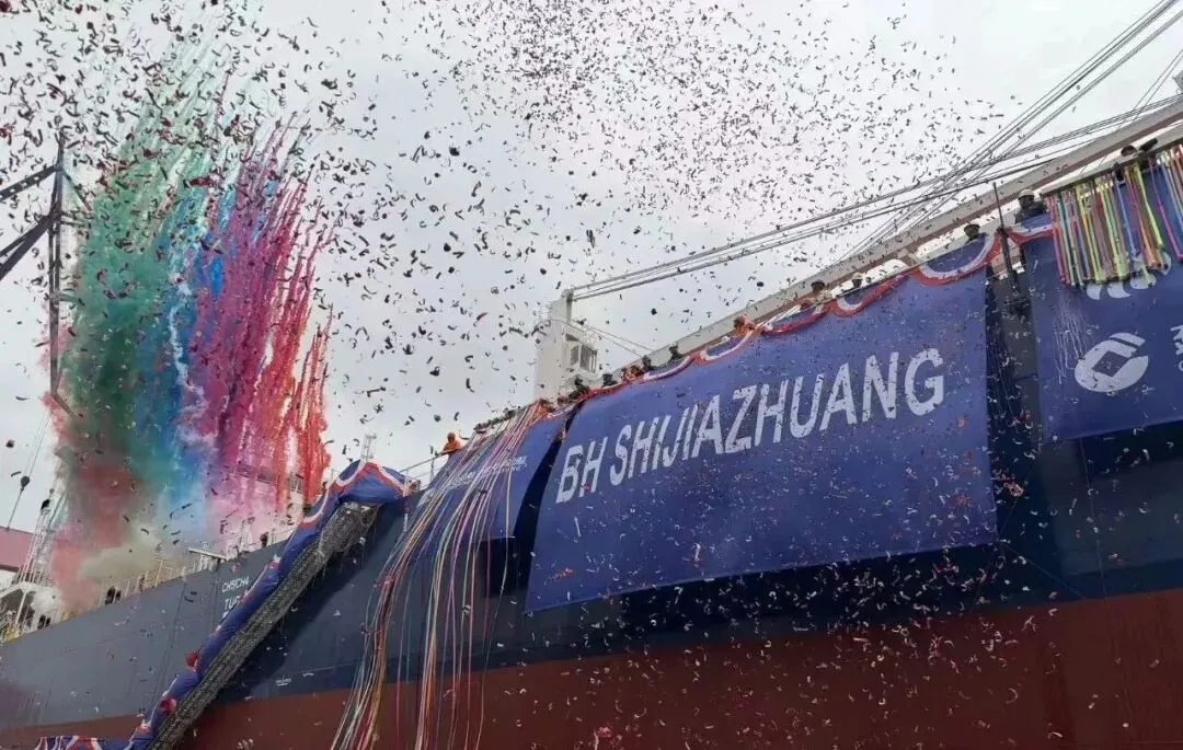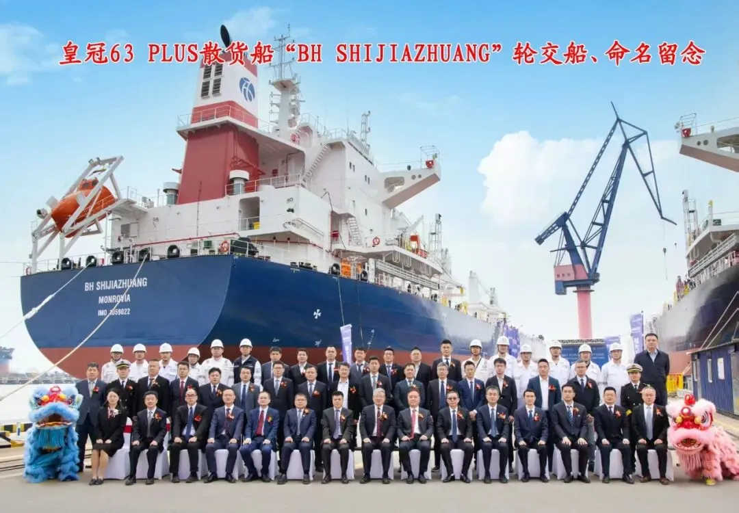 4月16日,河北交投集团所属渤海远洋公司首艘自有6.4万吨级灵便型散货船“渤海石家庄”轮(BH SHIJIAZHUANG)命名暨交付仪式在扬州新大洋造船有限公司举行。苏美达股份江皓珺女士担任教母,为新船命名。中国机械工业集团党委书记、董事长张晓仑,苏美达股份党委书记、董事长杨永清,中国船级社副总裁王宏伟,建信金租首席产品官安志成,渤海远洋公司党委委员、副总经理付爱勇等各方领导、合作伙伴代表共50余人出席仪式,共同见证这一重要时刻。付爱勇在致辞中表示,“渤海石家庄”轮(BH SHIJIAZHUANG)顺利交付,是公司与苏美达船舶、新大洋造船、建信金租等重要伙伴深化“蓝色合作”的典范之作,是践行河北交投集团“三链三块一群”产业矩阵的“硬核成果”,更是助力河北打造“海运强省”目标的“动力引擎”。船舶以河北省省会“石家庄”命名,不仅承载着河北企业走向深蓝、服务全球的坚定信念,更彰显了河北省以航运为纽带,联通国内国际两个市场,赋能区域经济高质量发展的使命担当。“渤海石家庄”轮(BH SHIJIAZHUANG)深度融合当代先进设计理念与前沿技术,搭载智能能效优化系统,可实时动态优化航行性能,有效降低碳排放强度,整体性能达到国际同船型标杆。船舶全长199米,宽度32.26米,载重6.4万吨,具备较强的远洋运输适配性与市场竞争力。近年来,全球航运市场格局深刻调整,绿色化、智能化已成为行业发展的必然趋势。渤海远洋公司抢抓行业转型升级机遇,科学规划船队发展战略,稳步推进自有运力建设,致力于打造一支“规模适度、结构优化、技术先进、绿色智能”的现代化船队。面向未来,渤海远洋公司将以“渤海石家庄”轮交付为新起点,持续优化运力结构,加快后续船舶建造进度;全面提升船舶运营管理水平,打造数字化、智能化航运管理体系;持续深化与产业链上下游的协同合作。渤海远洋公司将充分发挥河北交投集团的综合优势,主动融入国家“一带一路”建设和京津冀协同发展大局,不断增强核心竞争力与行业影响力,为推动河北省从“海运大省”向“海运强省”跨越,为建设交通强国、海洋强国贡献渤海远洋力量!