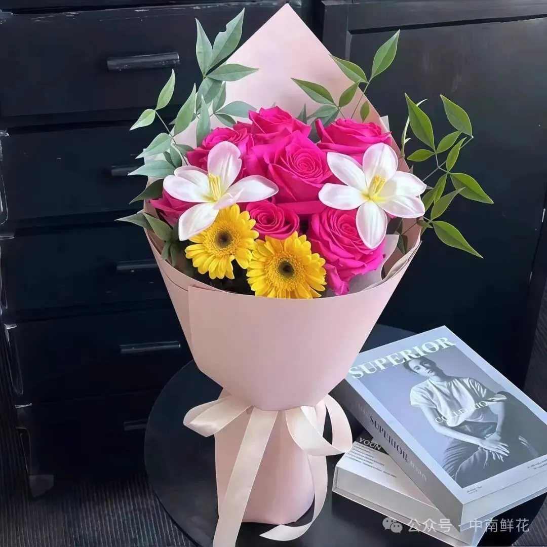 说明:由于鲜花包扎各地的花艺师不同,可能在形式和搭配上与图片不完全一致,但保证主花材的新鲜程度、数量、颜色与说明一致,谢谢。。