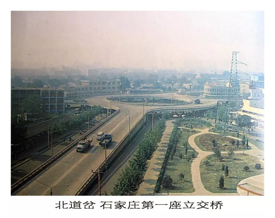 环岛式的设计,四层立体交叉,最高层是机动车道,底下是自行车道和人行道。放在80年代,这算是挺洋气的了。报纸上登、广播里说,来石家庄出差的外地人,也得专门跑到这儿看一眼。
