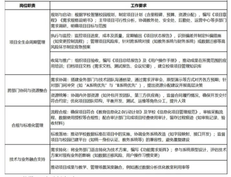 党政干事1人,智慧校园项目管理协调岗1人,数据治理与分析岗1人