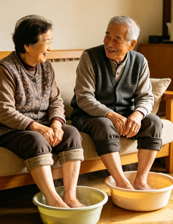 第二件事:每天晚上睡前10分钟,泡泡脚、聊聊天。张爷爷每天晚上睡前,都会用40℃左右的温水泡泡脚,泡10分钟,泡到脚微微发热就好,不泡太久,避免伤气血。泡脚的时候,和老伴聊聊天、唠唠家常,既能促进血液循环、缓解一天的疲惫,还能放松心情、帮助入睡,睡得香了,身体自然就好,还能减少孤独感,对身心都有益。而且不用加任何药材,清水泡脚就管用,简单又省事。