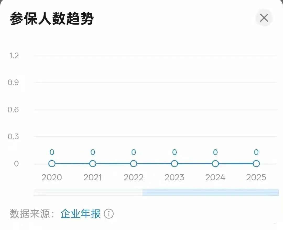 结果工商年报一查:2020-2025年,参保人数:0。