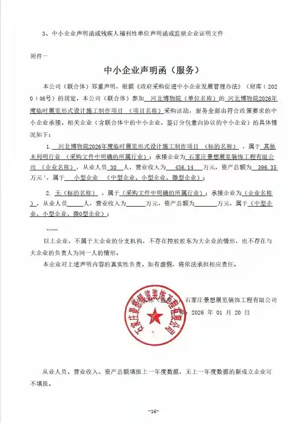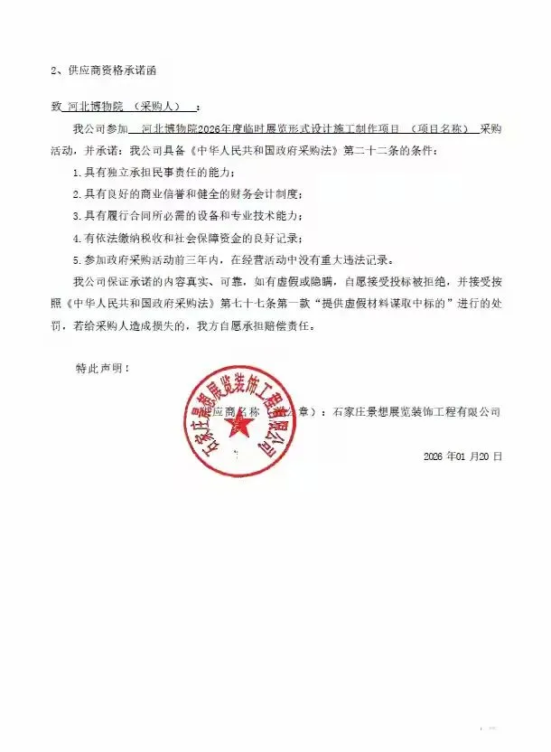 • 2026年1月21日:石家庄景想展览装饰工程有限公司以400万元中标