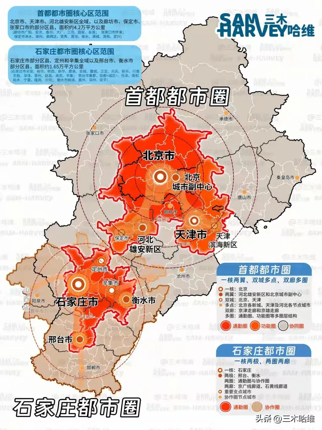 关于石家庄都市圈首都都市圈的关系,官方文件非常明确地提出:支持首都都市圈向南联动石家庄都市圈,支撑形成面向全国乃至全球的多层次协同开放格局,打造以首都为核心的世界一流城市群。两者地理上不重叠,通过京保石发展轴串联,形成“一北一南”双核联动格局,共同构成京津冀世界级城市群的空间骨架。鉴于天津距离首都太近,石家庄获批了带动冀中南的都市圈,相比而言,石家庄能够获得国家政策背书算是非常幸运了。