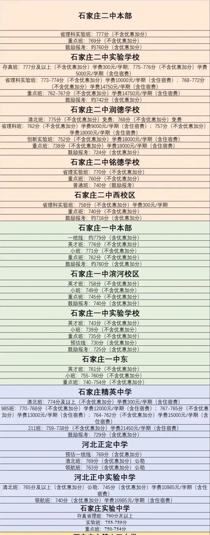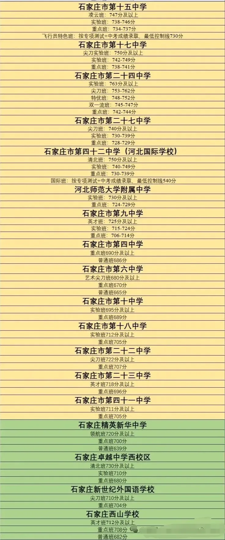 >石家庄市各高中班型分数汇总,2026中考参考