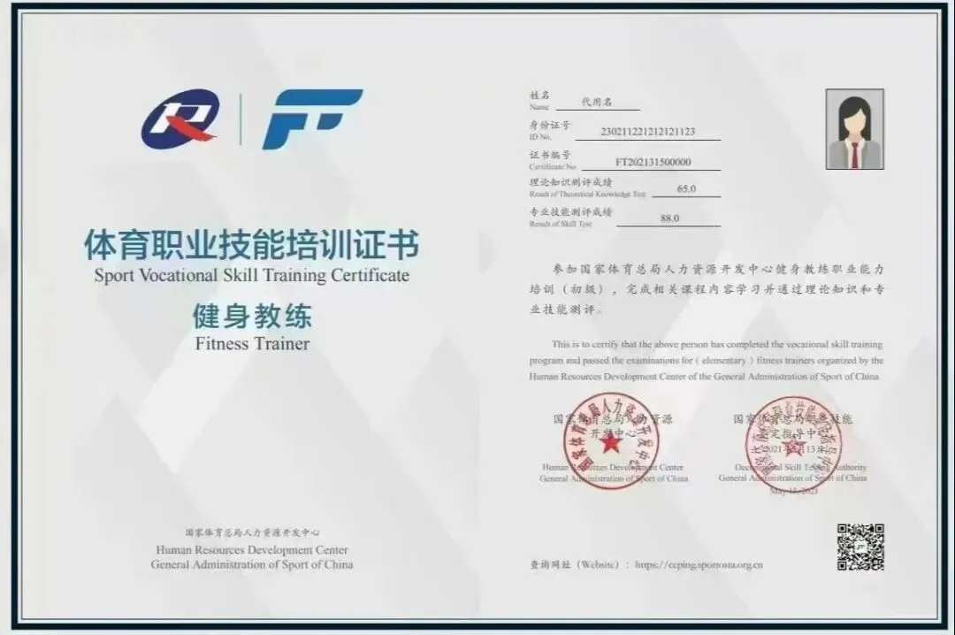 测评合格者(理论60分、技能60分),颁发“健身教练职业能力培训证书”
