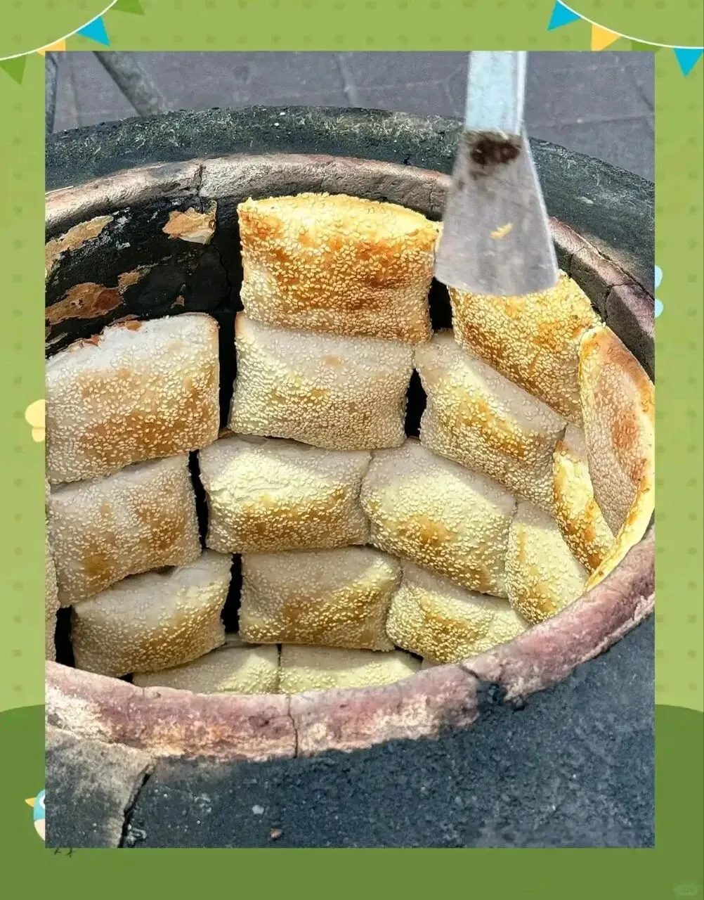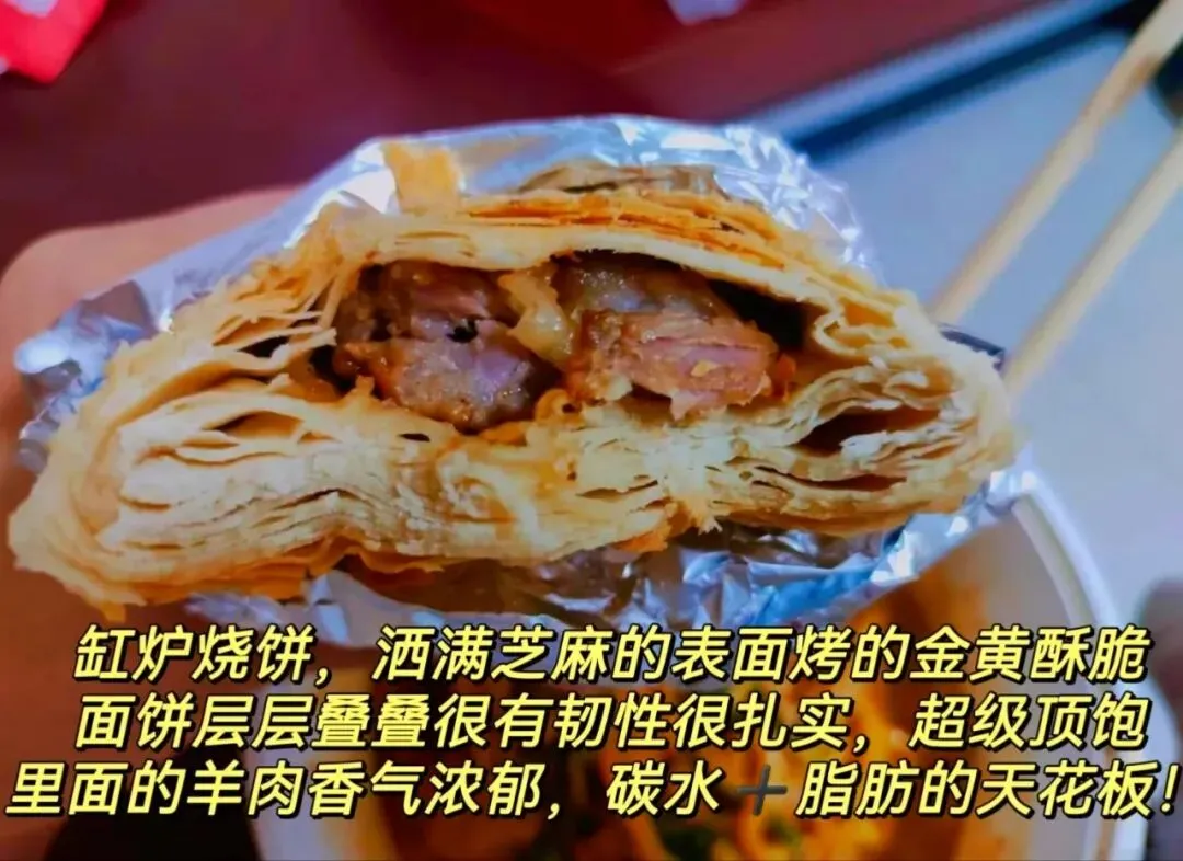 不用烤箱,不用铁板,用一口水缸。把缸底敲掉,倒扣过来,缸壁就是烤炉。面团贴在滚烫的缸壁上,芝麻朝下,烤出来的烧饼,外皮酥脆掉渣,内里柔软分层,咬一口,麦香和芝麻香一起在嘴里跳舞。