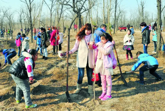 春天里,众多市民来到石家庄市小壁林区义务植树,种下绿色希望。