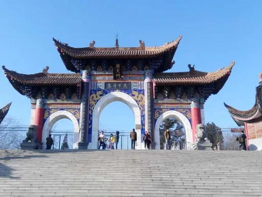 进了门才算真正逛景区。山顶特别大,路线很顺:长城、韩信祠、万佛洞、五百罗汉堂、千龙壁,一圈走下来大概俩小时。