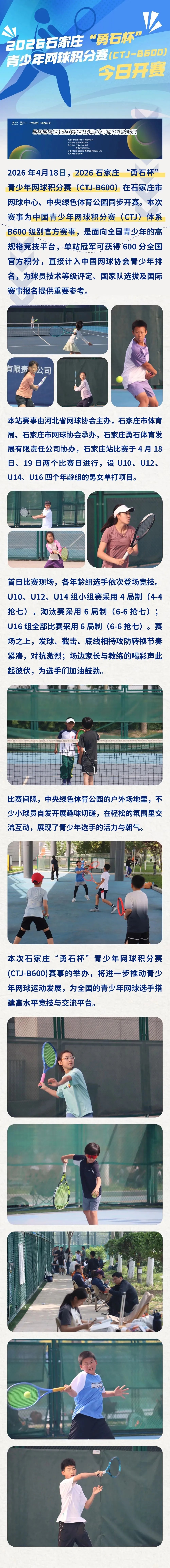 >2026 石家庄 “勇石杯” CTJ-B600全国青少年网球积分赛今日开赛