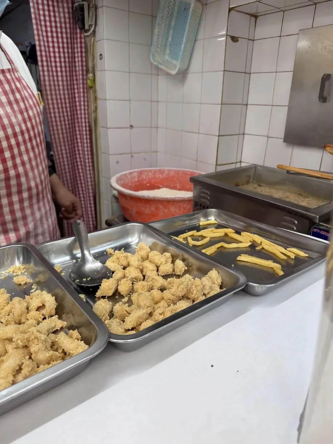 就是老小区楼下开了十几年的小门脸,进去就是旧旧的白瓷砖墙,油锅一直滋滋响,老板都是现炸现装,刚捞出来的薯条鸡米花摆得满满当当,油香味直接往鼻子里钻啊