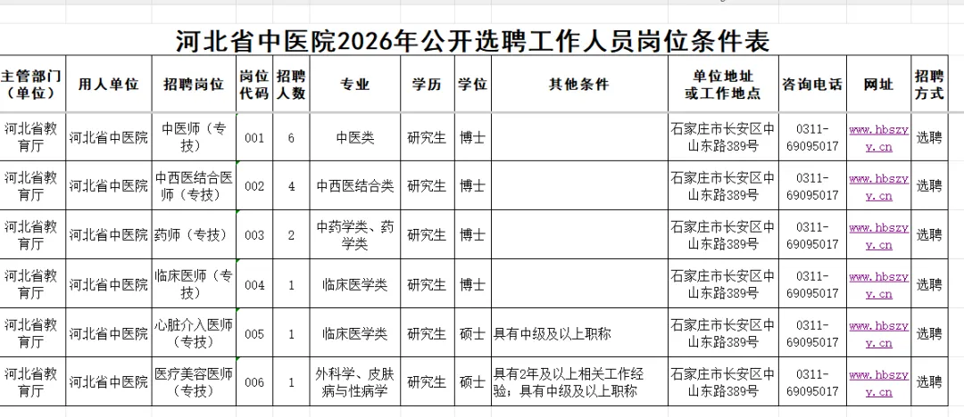 附件:河北省中医院 2026年公开选聘工作人员公告