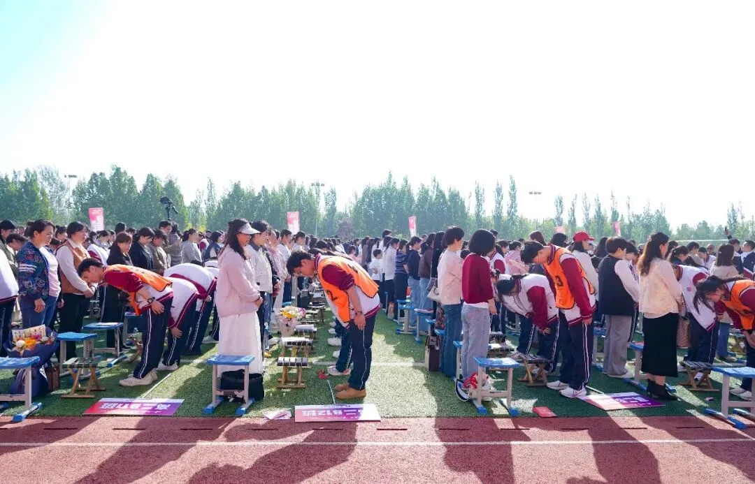 时光执笔,写下成年的诗行。昔日孩童,今已风华正茂、重任在肩。家长为学子行拍肩礼,嘱托他们心怀家国,懂得感恩,勇于担当。学子以九十度深鞠躬,感恩父母养育恩情。