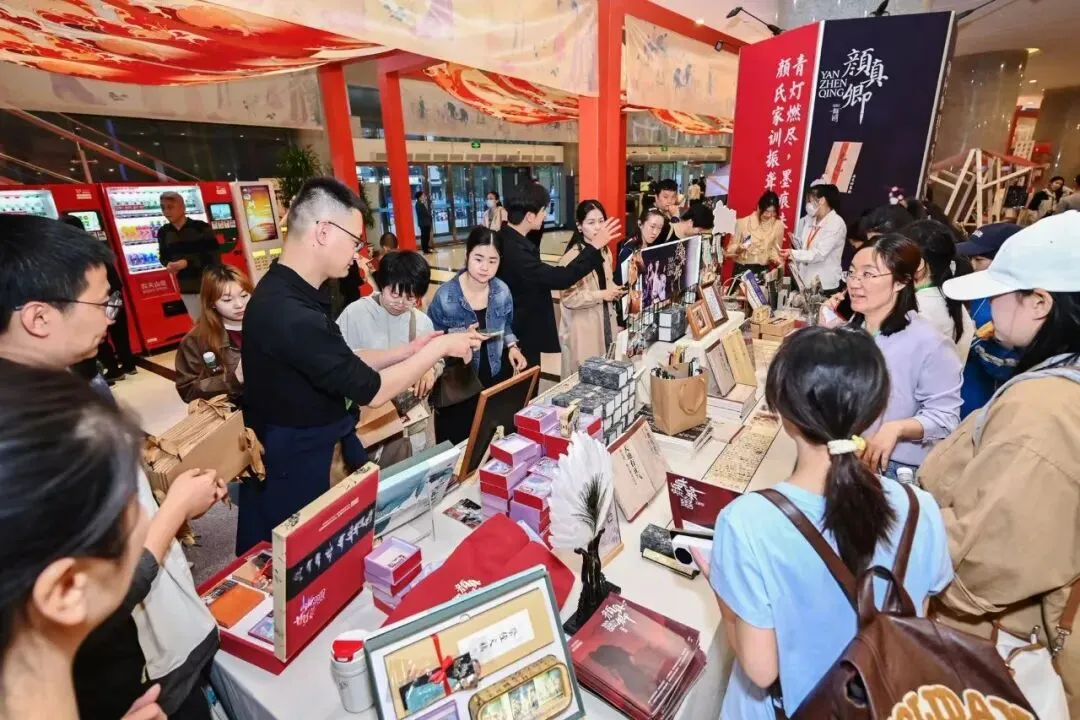 文创、书法周边、手作好物……摊位前人头攒动。有人淘到了心仪的颜真卿主题书签,有人带走了一方小印,还有人在手写扇面摊位前驻足良久。