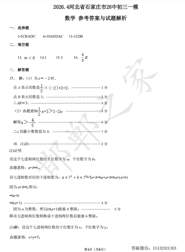 我用夸克网盘给你分享了「2026.4河北省石家庄市28中初三一模数学试卷含答案」,点击链接或复制整段内容,打开「夸克APP」即可获取。
