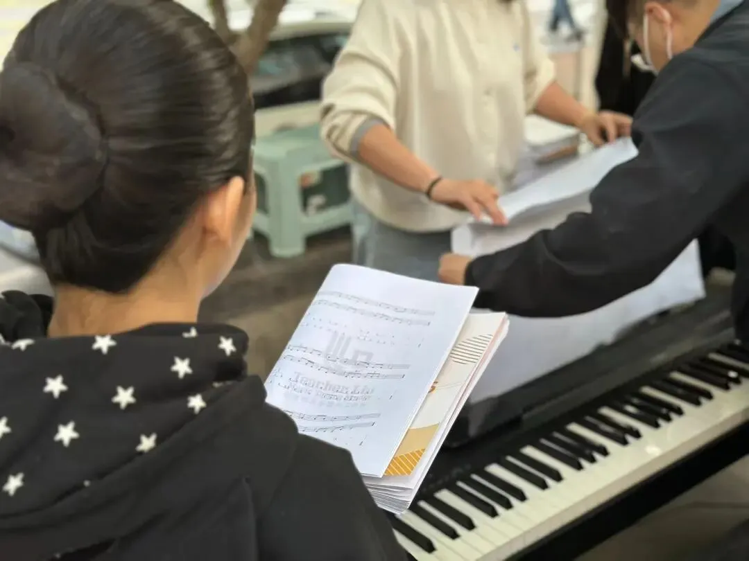我们老师明天在考场外继续陪伴大家,现场准备了一台公益备考的电钢琴,以备孩子们考前练习使用,另外一些水和备考资料,随取随拿