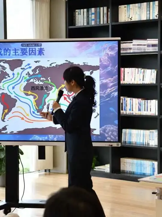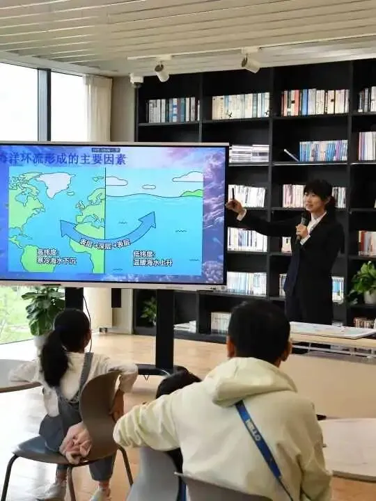 互动问答环节中,授课老师抛出趣味海洋环流知识问题,“小黄鸭为什么能环球漂流?”“暖流和寒流相遇会发生什么?”,大家踊跃举手、积极抢答,每一位答对的孩子都能获得小礼品,在轻松欢乐的氛围中巩固了所学知识,充分展现了青少年的求知欲与活力。