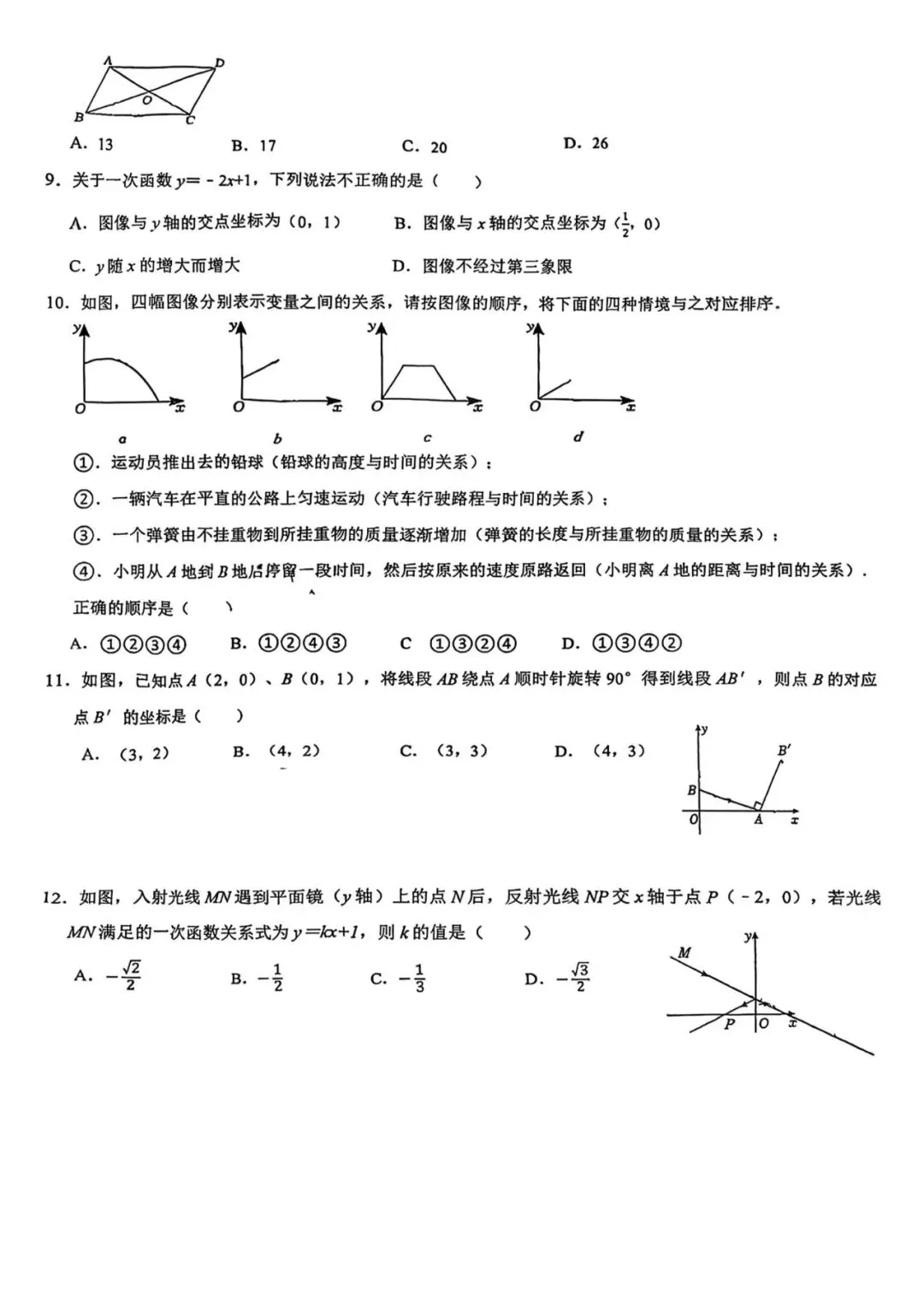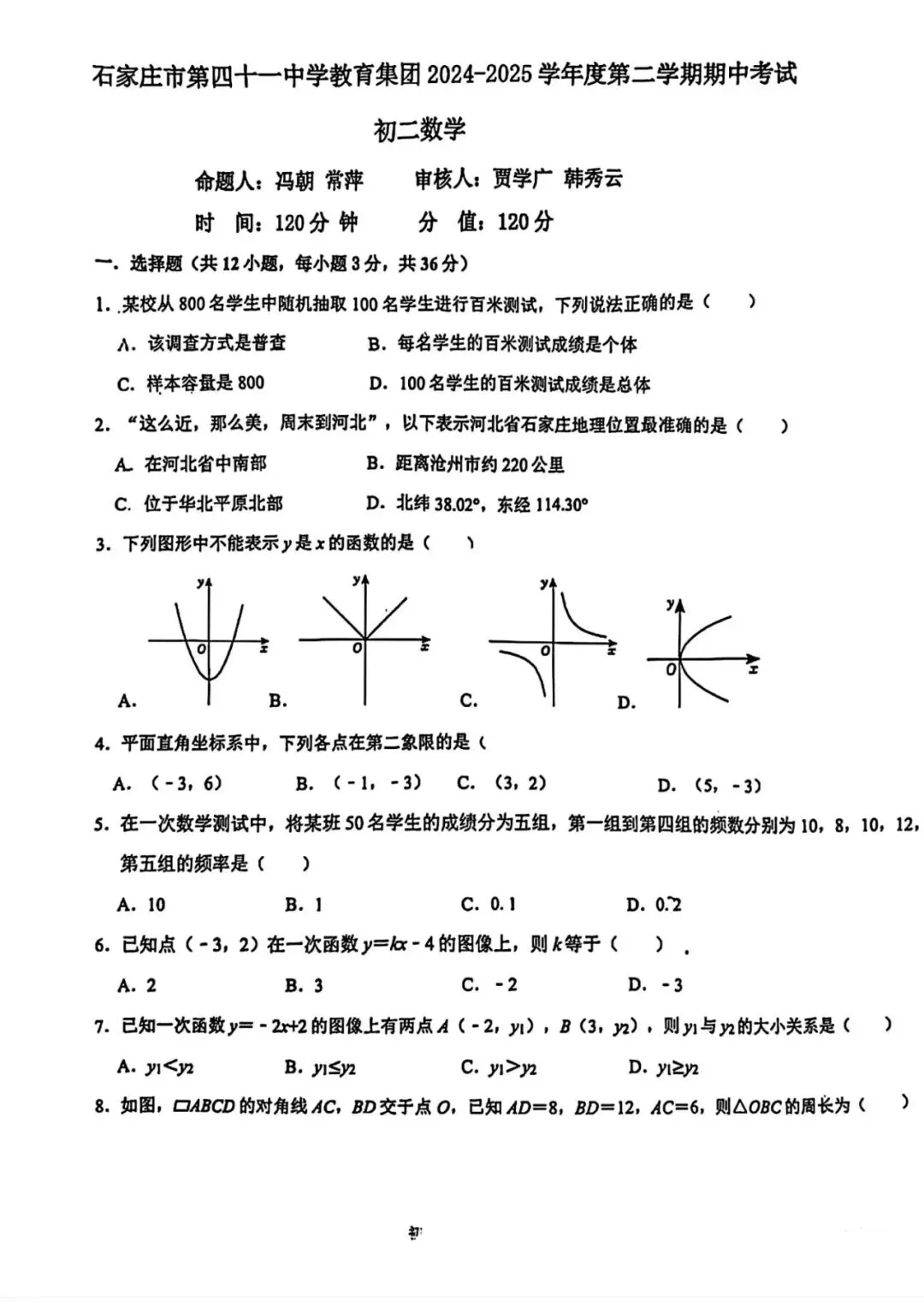 >【八下期中】2025年4月石家庄41中八年级数学期中卷(可下载)