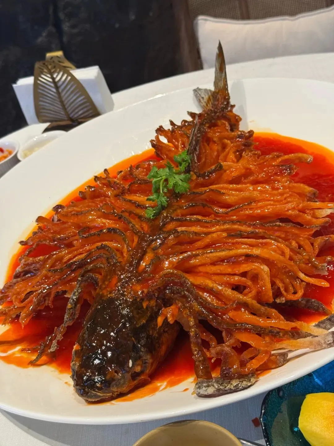 🥢 舌尖石家庄:一口入魂的冀味烟火1. 驴肉火烧|石家庄人的灵魂早餐酥脆火烧夹卤香驴肉,配羊汤/小米粥,一口封神。✅ 推荐:高建民驴肉火烧、赵县薛家烧饼。2. 金毛狮子鱼|冀菜天花板河北十大经典名菜,鲤鱼剪200余条炸至金黄,形似狮子,外酥里嫩。✅ 推荐:正太饭店、燕风楼。3. 正定八大碗|非遗宴席四荤四素蒸菜,扣肉、酥肉软烂入味,宋记八大碗最正宗。4. 地道小吃合集• 牛肉罩火烧:浓汤泡饼,暖心暖胃,白家老店必吃。• 金凤扒鸡:百年老字号,20余种香料焖煮,脱骨入味。• 无极饸饹:荞麦面+羊肉臊子,劲道爽滑。• 缸炉烧饼:外酥里嫩,芝麻飘香,配崩肝绝配。5. 夜市狂欢• 湾里庙/火车头步行街:霓虹闪烁,小吃扎堆,逛到凌晨。• 正定旺泉古街:非遗小吃聚集地,烧麦、崩肝、热切丸子一次吃遍。石家庄,从不是一座单调的城市。它有正定的千年古韵,有西柏坡的红色记忆,有太行的壮阔山水,更有驴肉火烧、八大碗的温暖烟火。这座火车拉来的城,藏着太多惊喜,值得你慢下来,好好逛一逛。