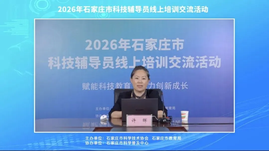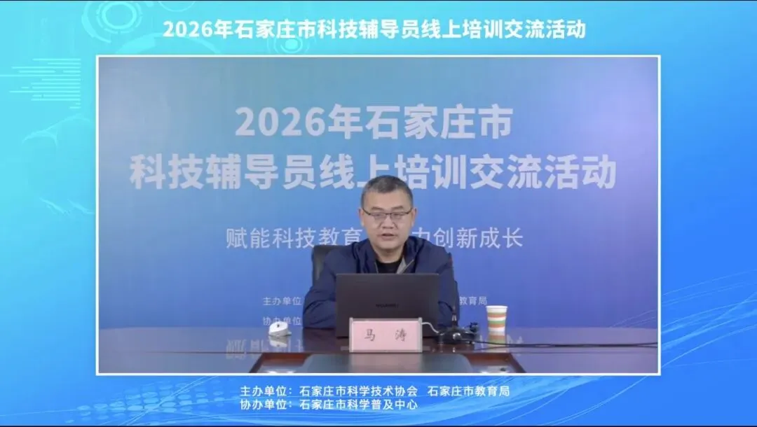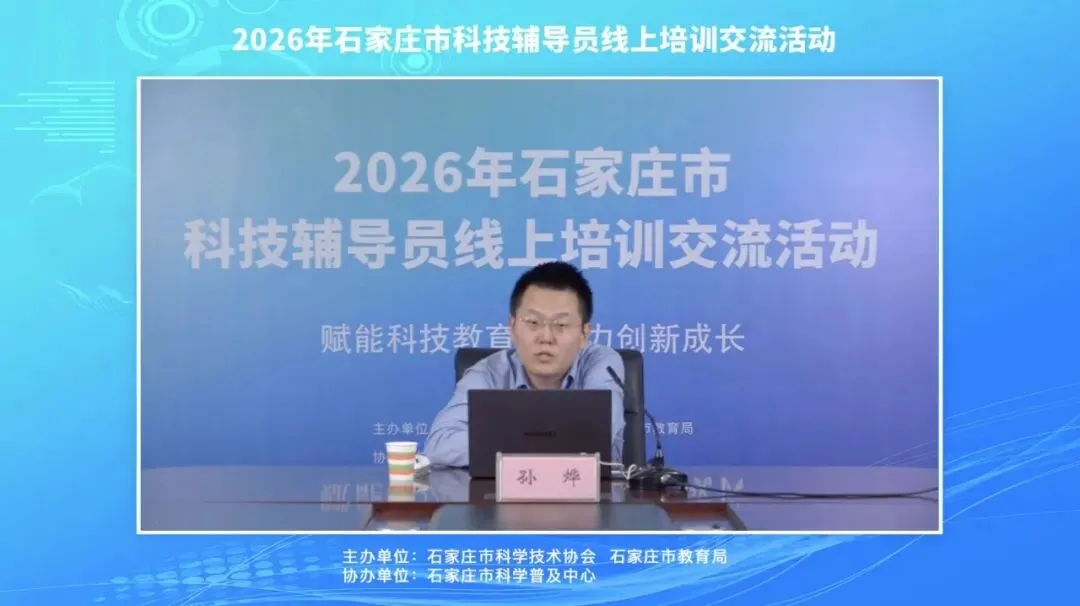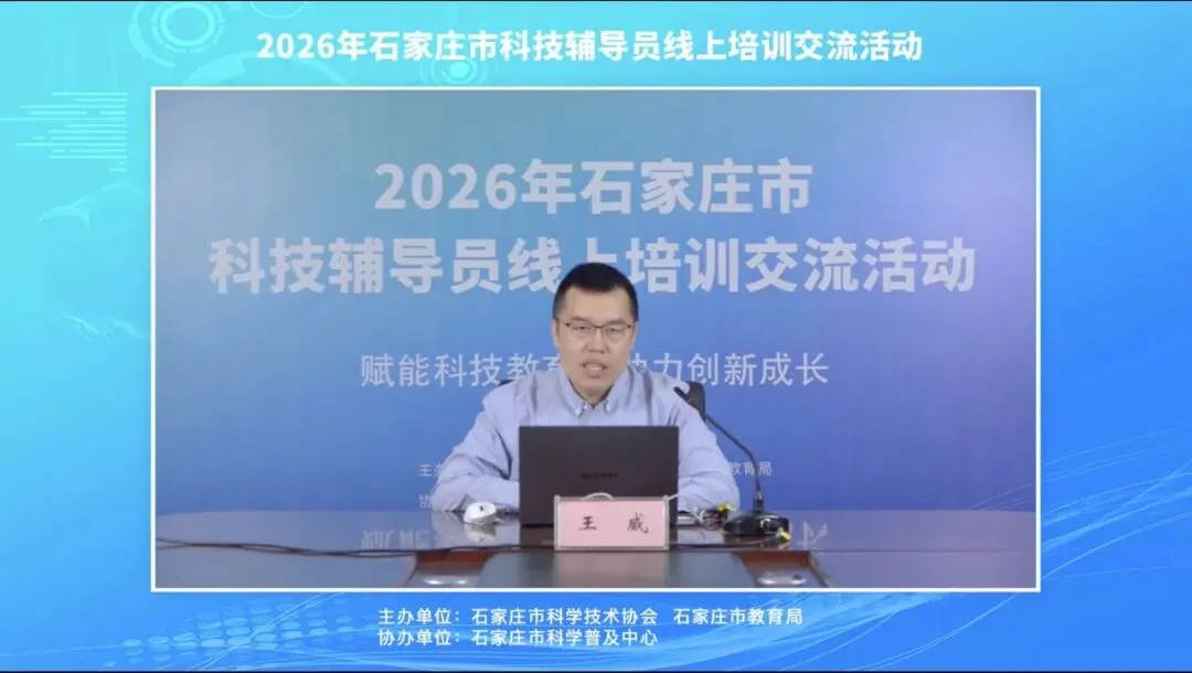 为进一步提升全市青少年科技辅导员业务能力和综合素质,4月18日—19日,由石家庄市科协、市教育局主办,市科普中心协办的“2026年石家庄市科技辅导员线上培训交流活动”顺利开展。市科协党组成员、秘书长申剑红出席活动并讲话。开班仪式由市科普中心副主任张品主持。