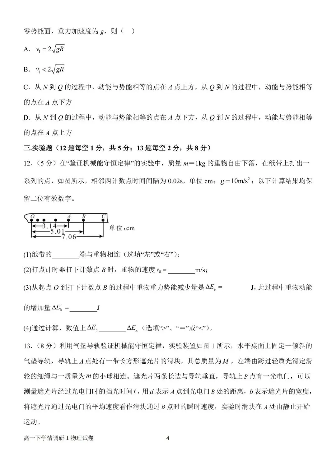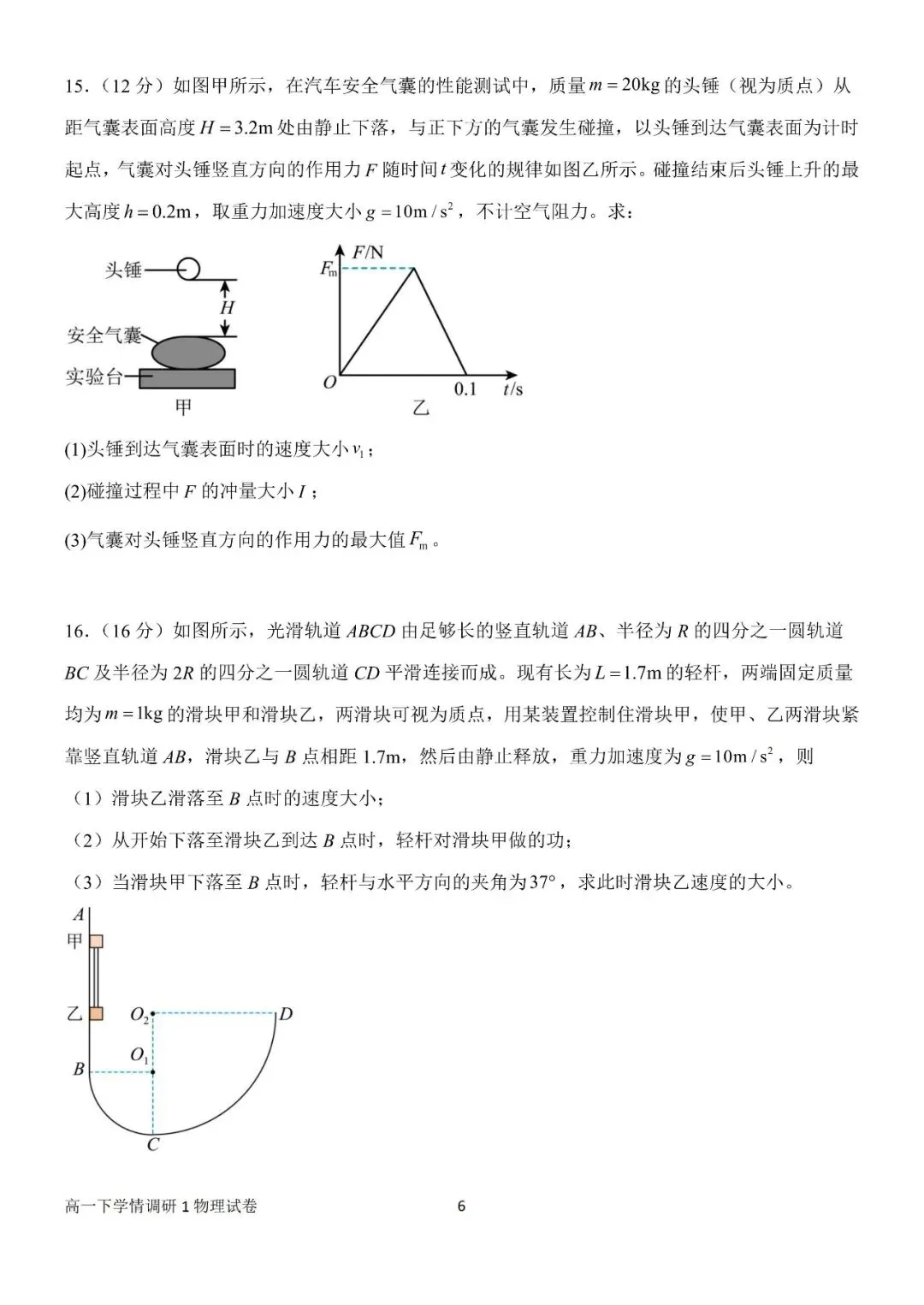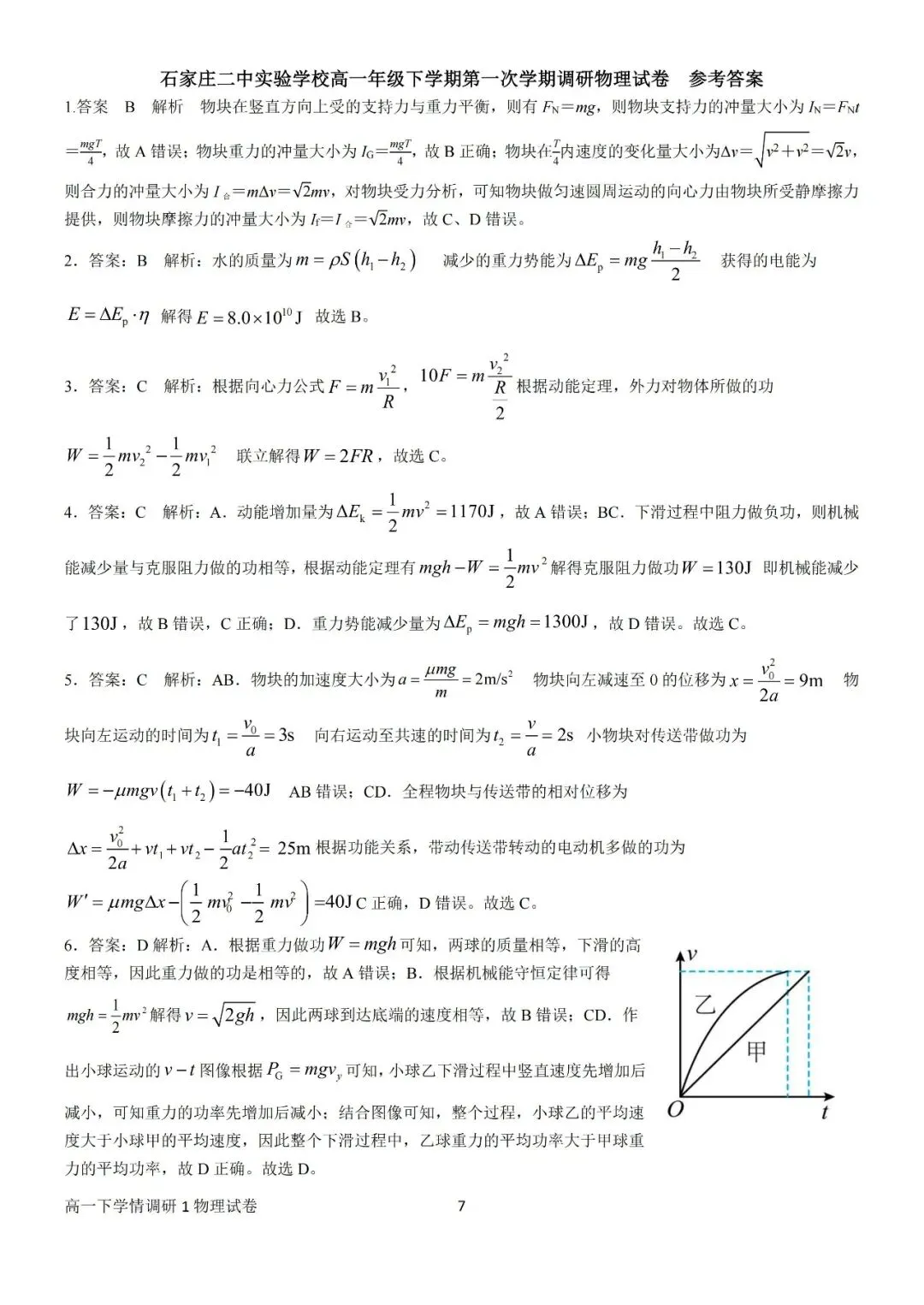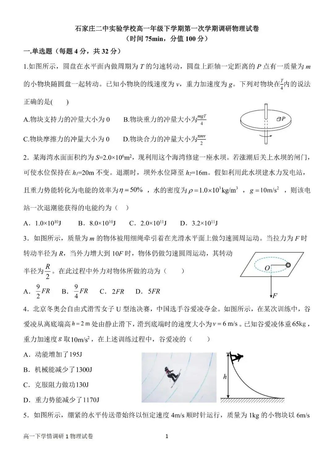 【高一试卷】2025-2026学年石家庄二中高一下学期第一次调研物理试卷(含答案)