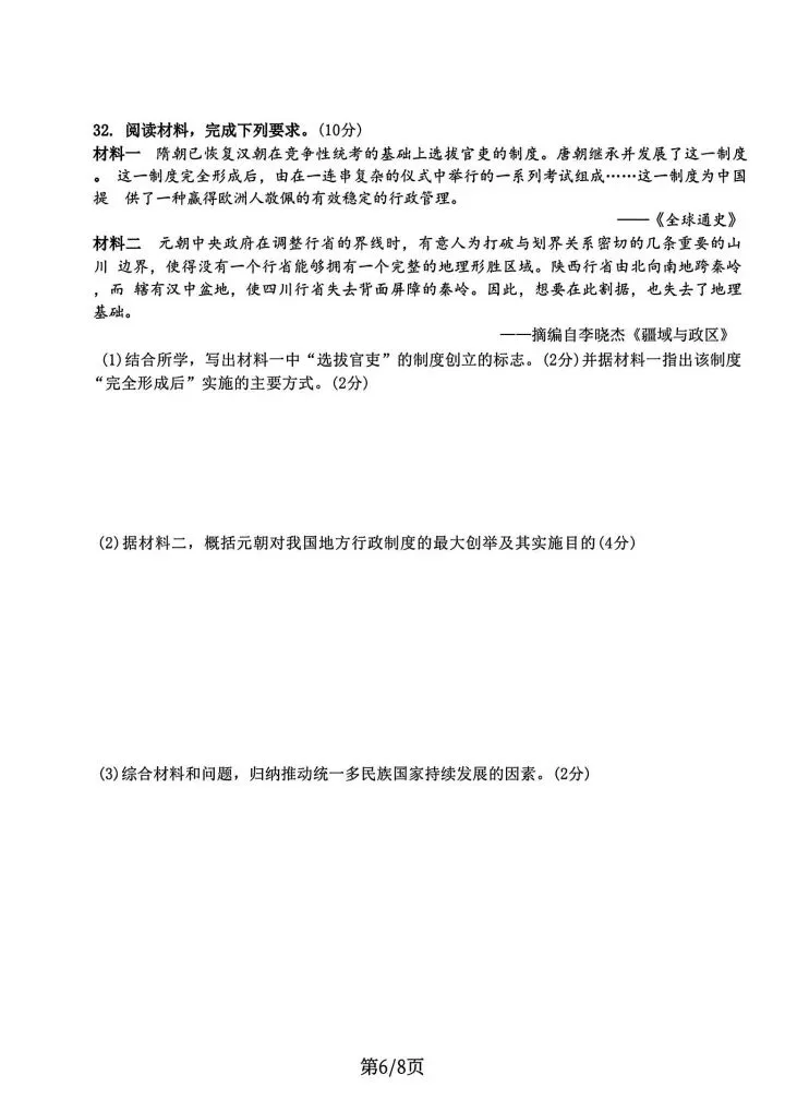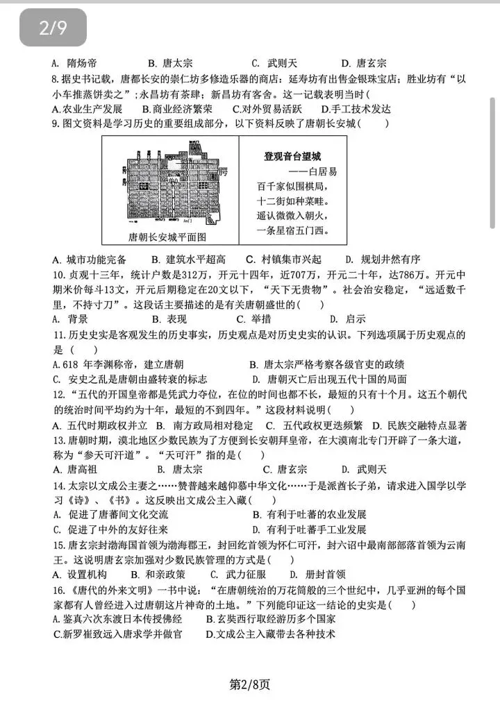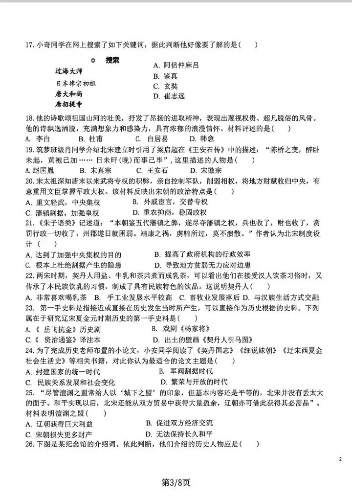 >石家庄43中七年级下册期中历史卷