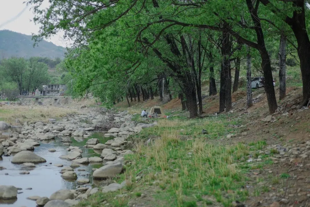 唐六线我们这次就走了一小段,因为刚拐进唐六线没走多远,就看到路边有块空地可以停车,有高大的垂柳可以遮阳,河边还有空地可以搭帐篷,是一块非常完美的露营地。不美的是河边有很多垃圾,非常刺眼。