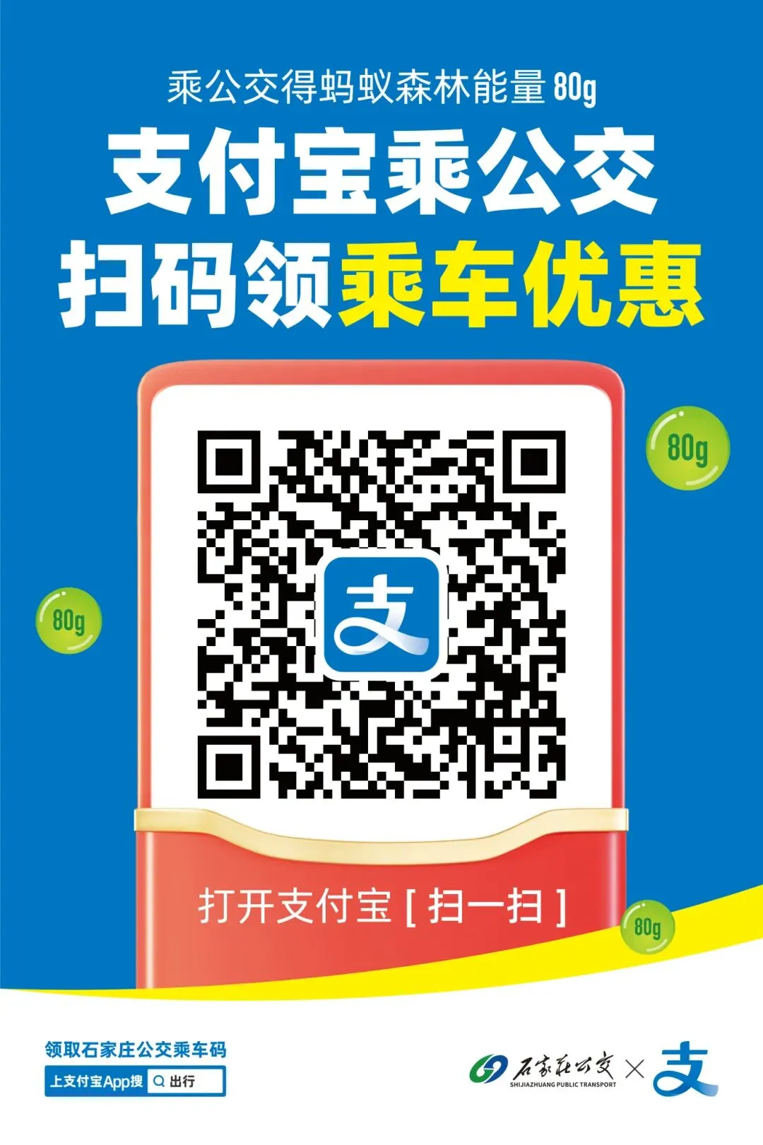 现在乘坐石家庄公交,先打开支付宝APP扫码免费领取随机乘车优惠,领取后刷码乘车,马上享优惠!