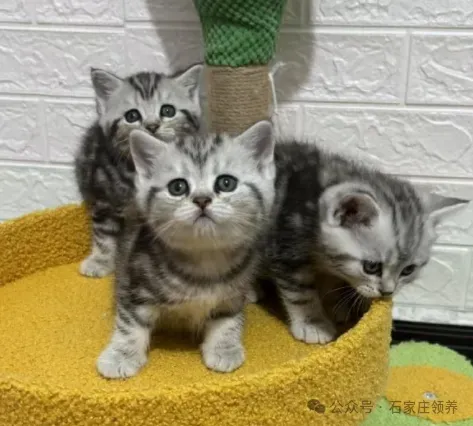 编号:0515-03***美短虎斑,2只妹妹一只弟弟,刚满两个月,品相很好,很健康, 活波可爱,一次外驱,还没打疫苗850出 ! 送:过渡猫粮。