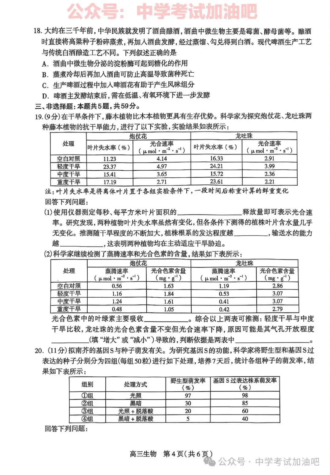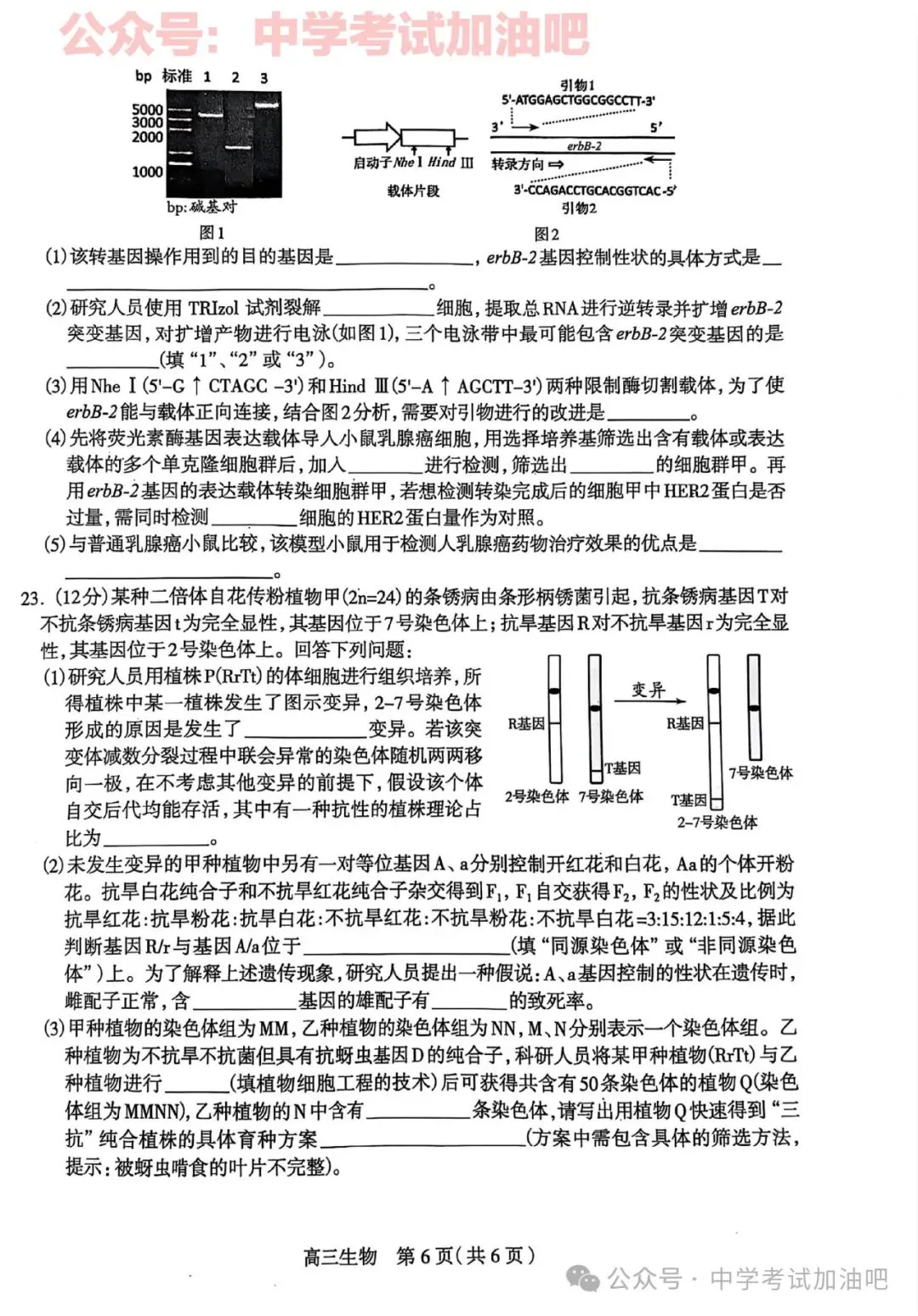 需要生物PDF电子版,高清版请关注公众号:中学考试加油吧