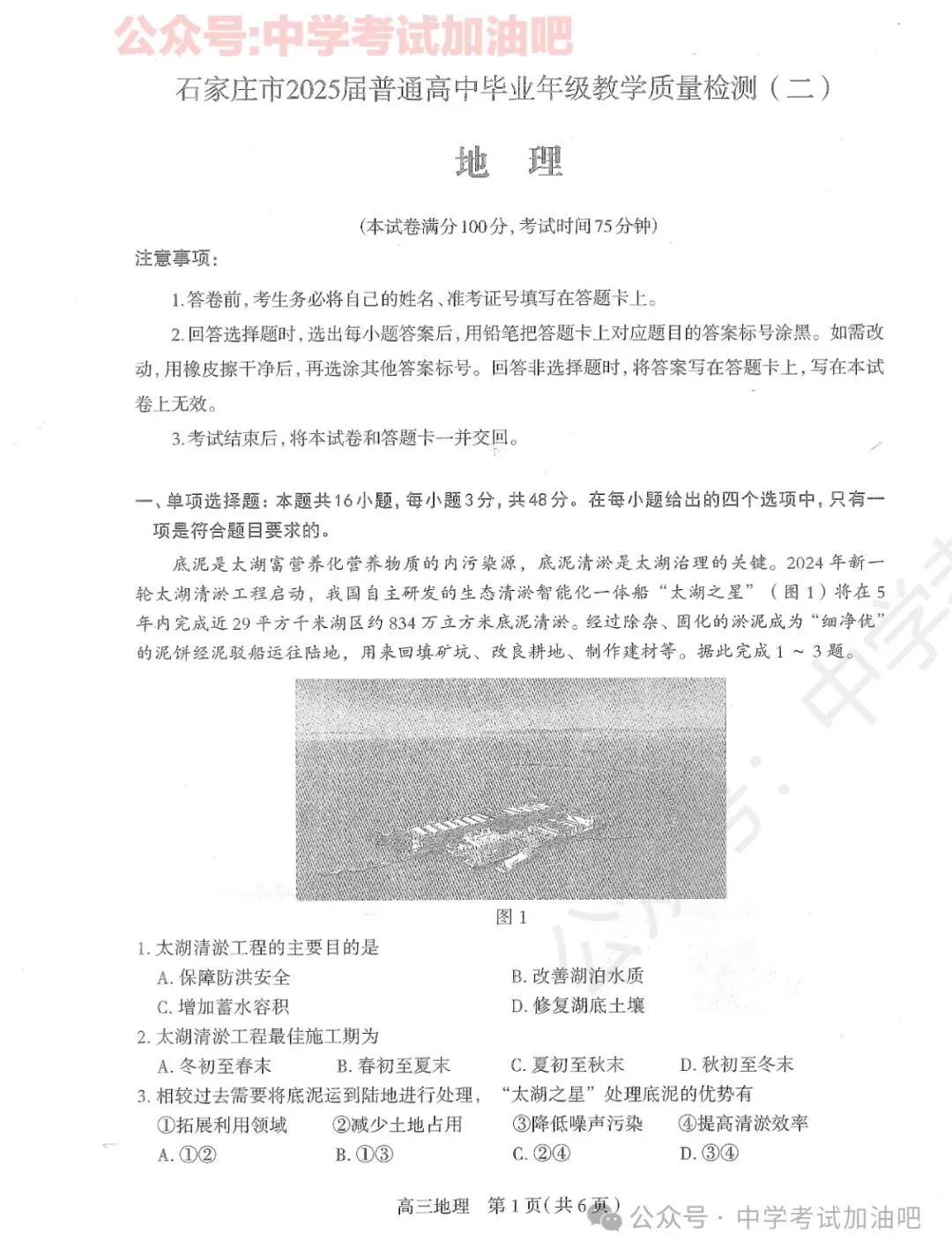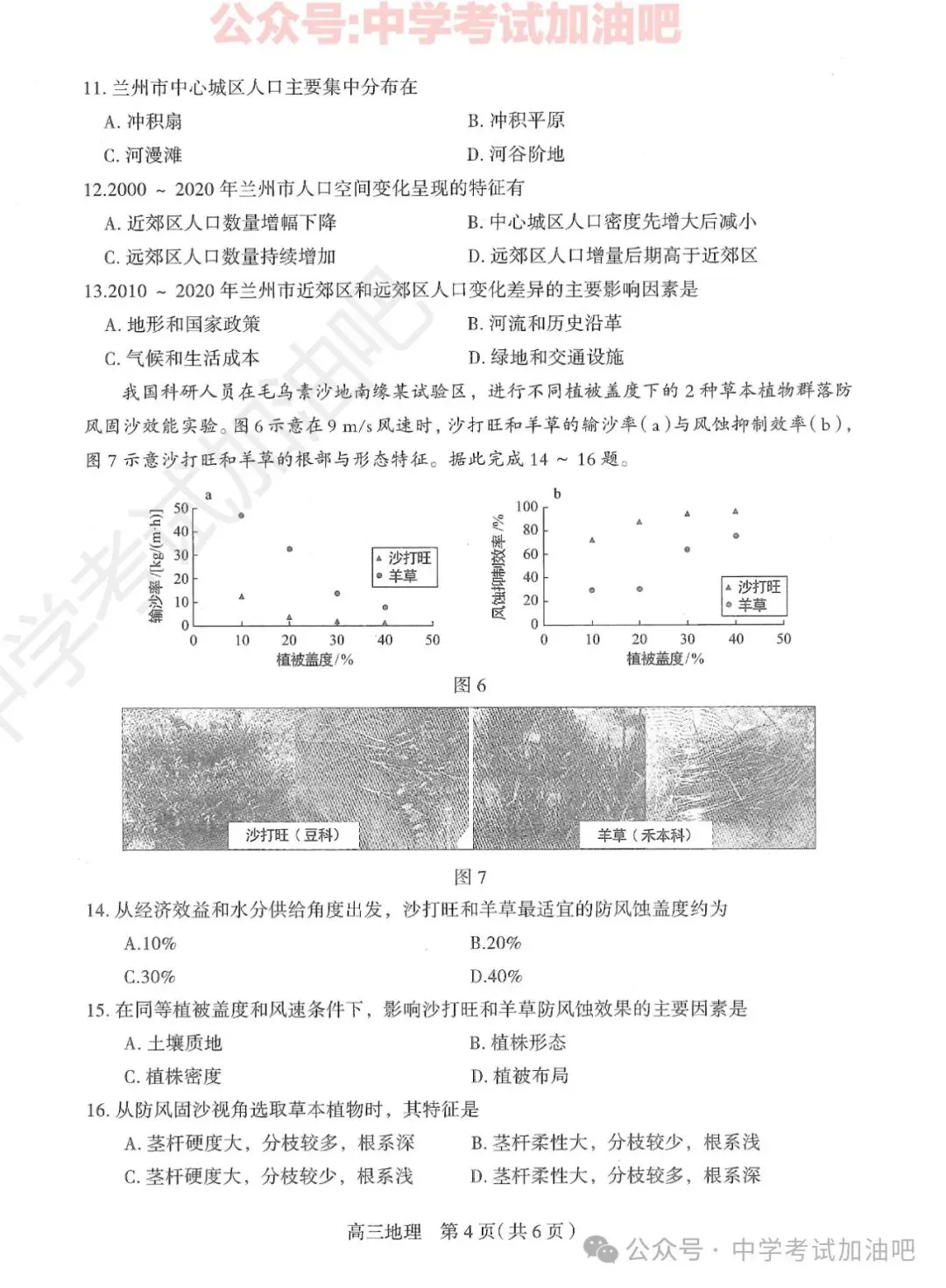 需要地理答案及PDF电子版,高清版请关注公众号:中学考试加油吧