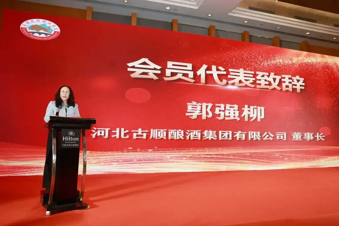 商会会员代表、河北古顺酿酒股份有限公司董事长郭强柳,代表新一届理事会会员企业作发言,她对新当选的新一届商会领导班子表示祝贺,并表示愿与全体会员共同努力支持商会的发展、携手同行共创商会发展新篇章。